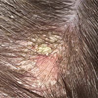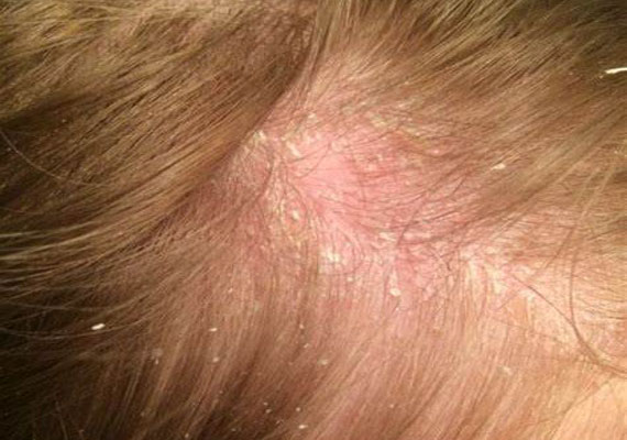 Si presenta sul cuoio capelluto con chiazze rossastre coperte da cumuli compatti di squame color bianco-argenteo.