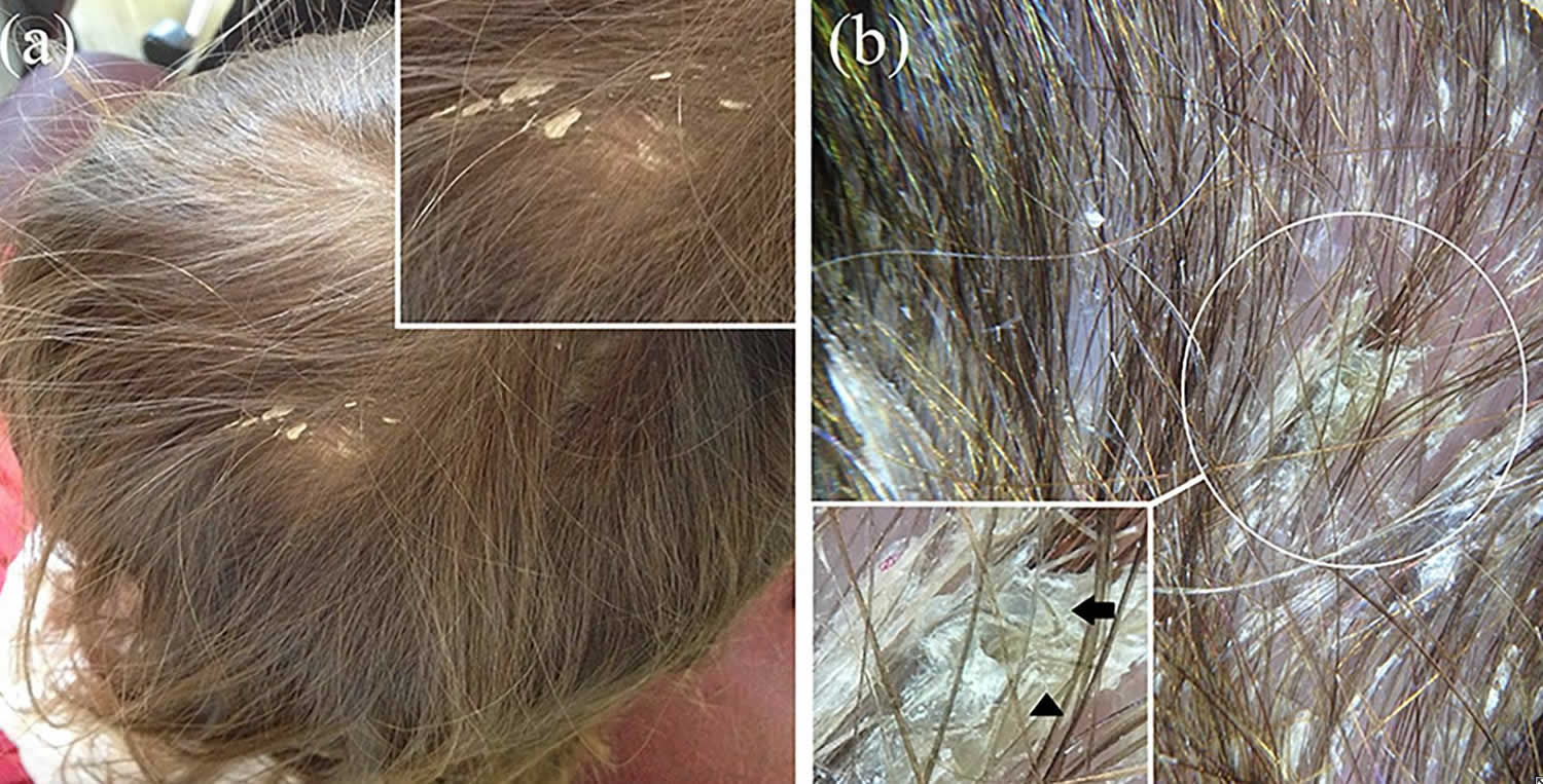- Pitiriasi secca, o semplice, nella quale il cuoio capelluto è coperto da piccole squame molto fini, di facile distacco, che impolverano gli abiti, con cute normale e prurito assente